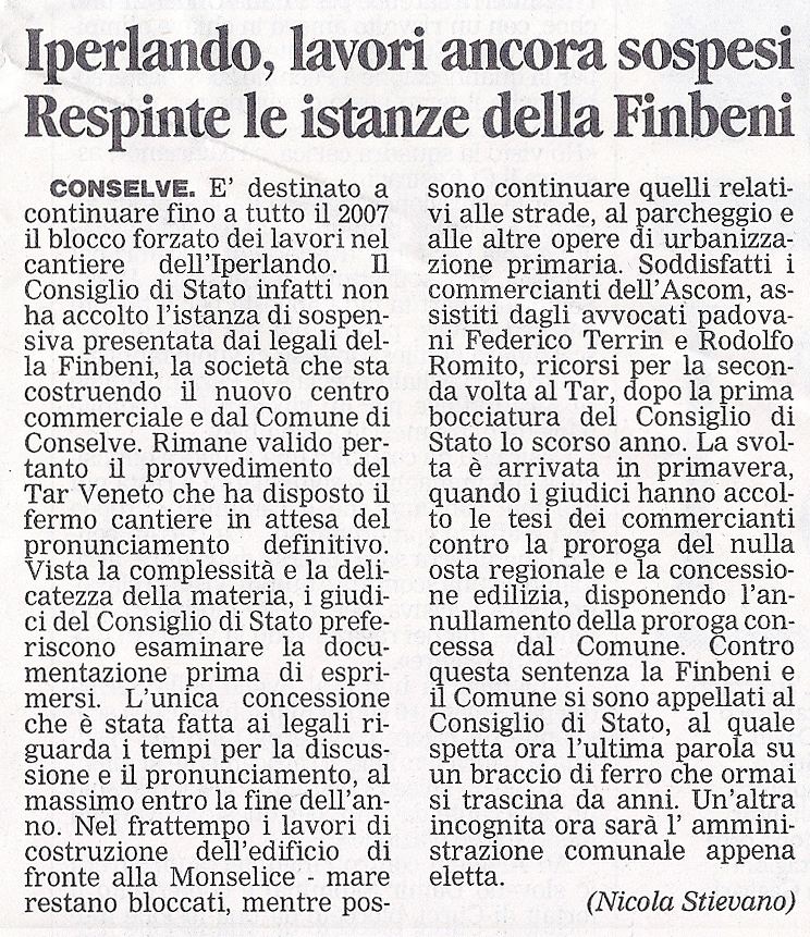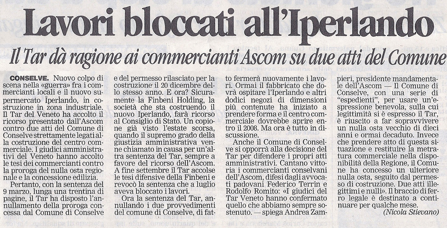 RASSEGNA STAMPA - I CENTRI COMMERCIALI ED I PERMESSI A COSTRUIRE |