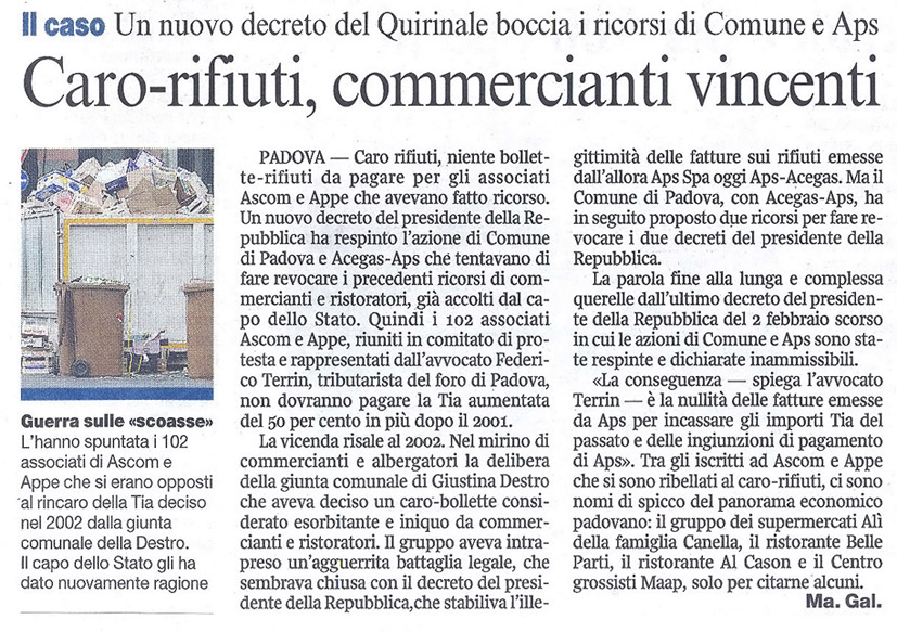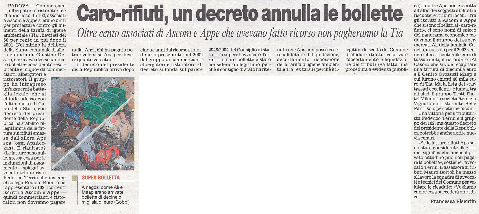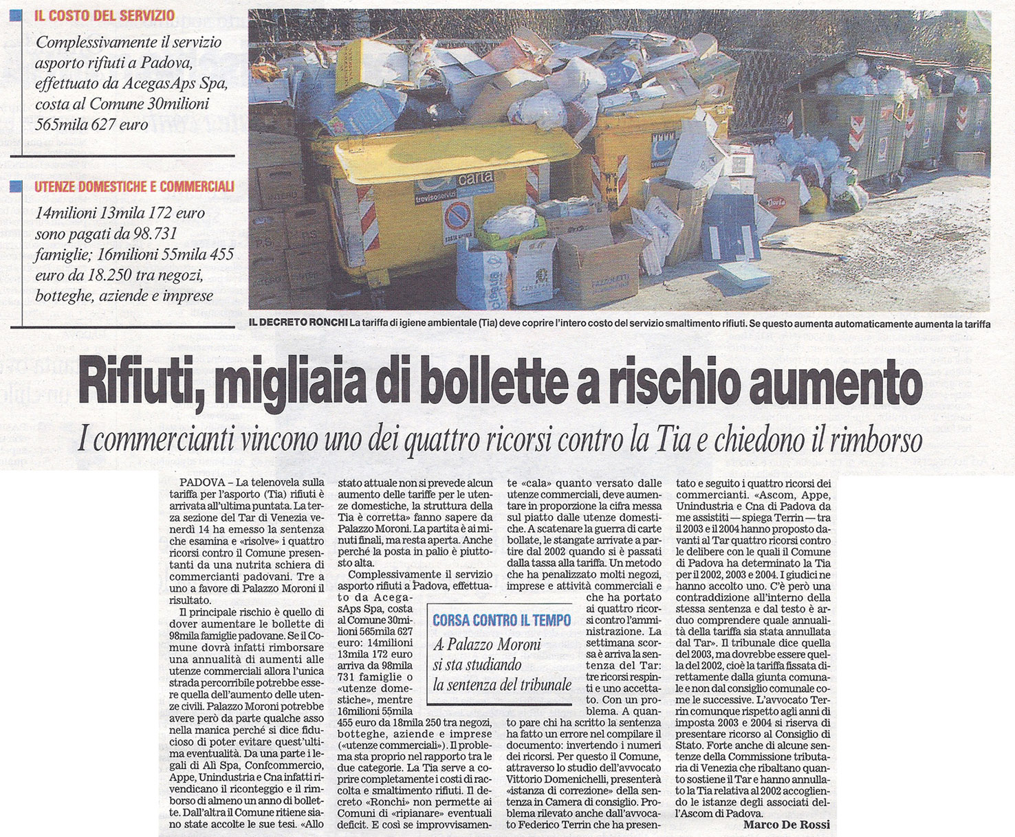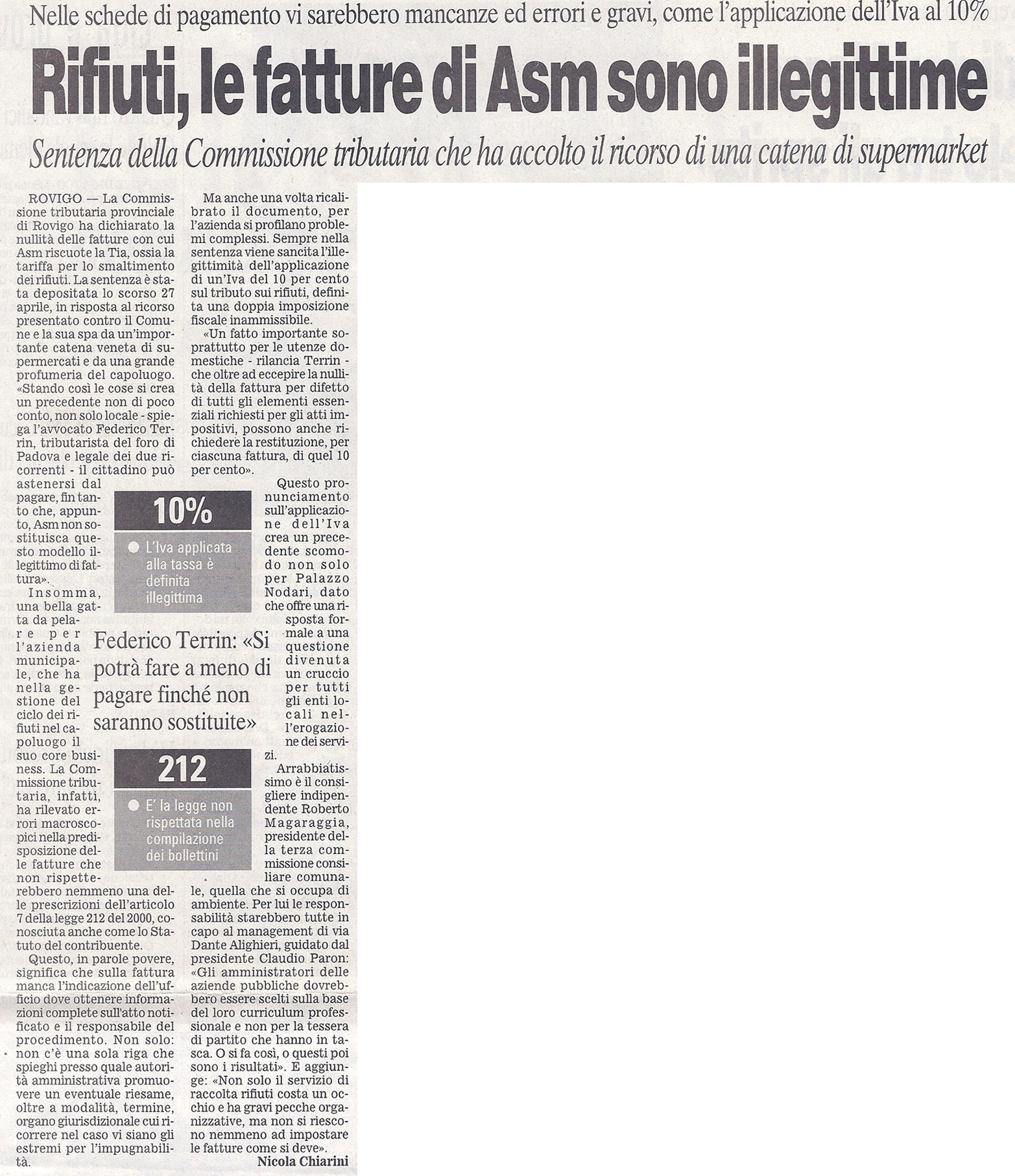 <<Tariffa rifiuti, Iva illegittima>>. E scatta la corsa ai rimborsi |