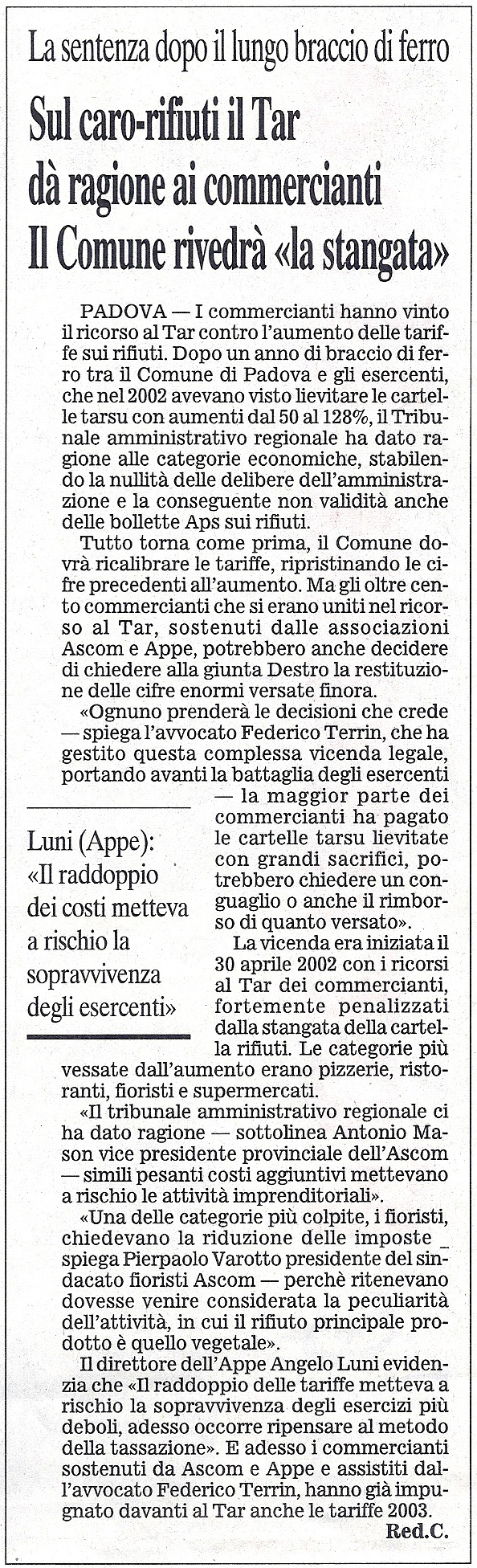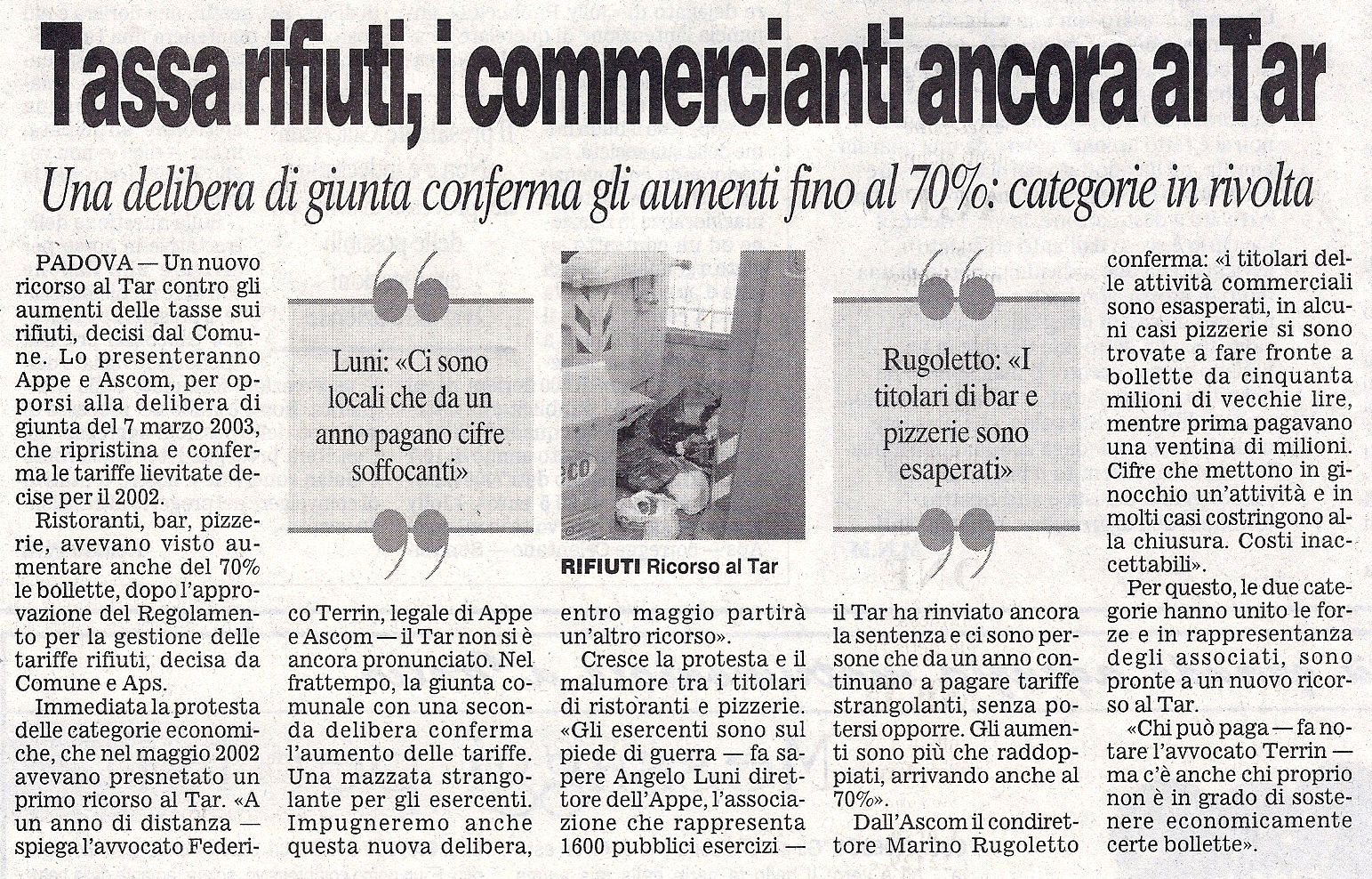 Sul caro-rifiuti il Tar dà ragione ai commercianti. Il Comune rievedrà la <<stangata>> |