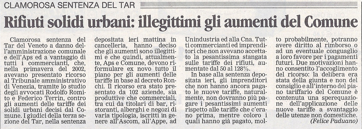 Rifiuti solidi urbani: illegittimi gli aumenti del Comune |